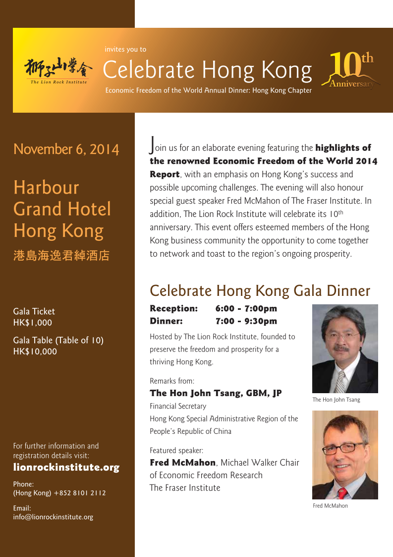 Economic Freedom of the World and The Lion Rock Institute Gala Dinner